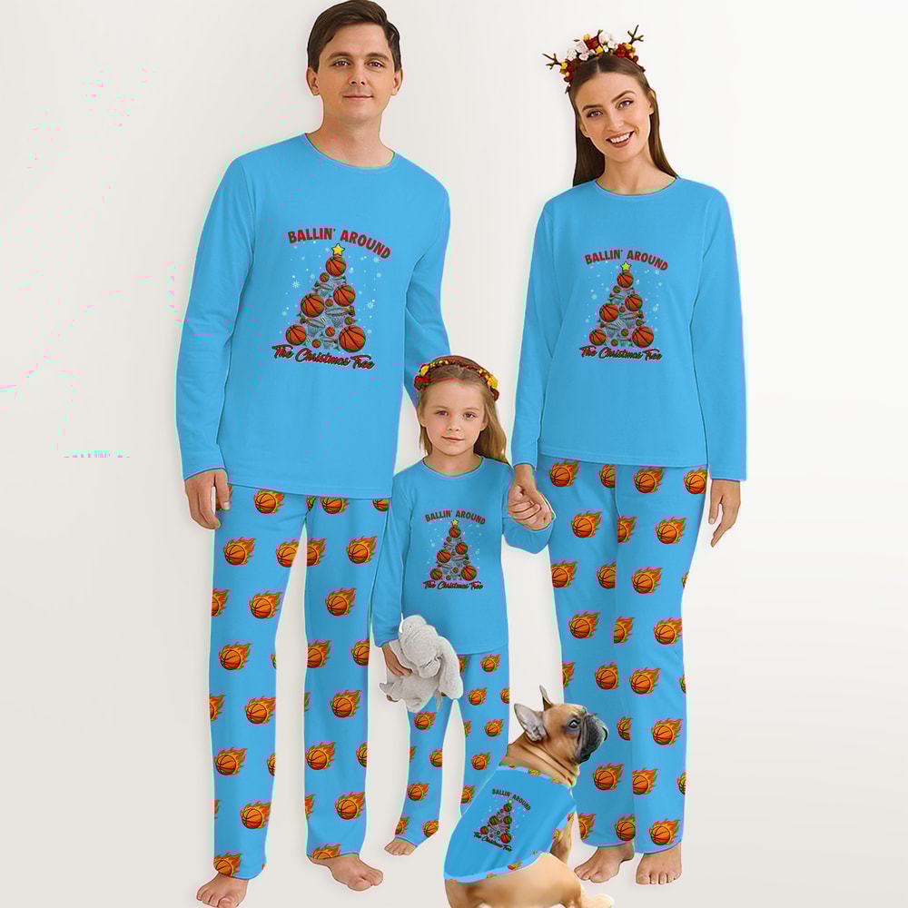 Bring sporty cheer to Christmas with blue Basketball Family Pajamas! Matching sets for men, women, kids, babies, and pets. Soft, comfy, and easy to care for - perfect for every family.
