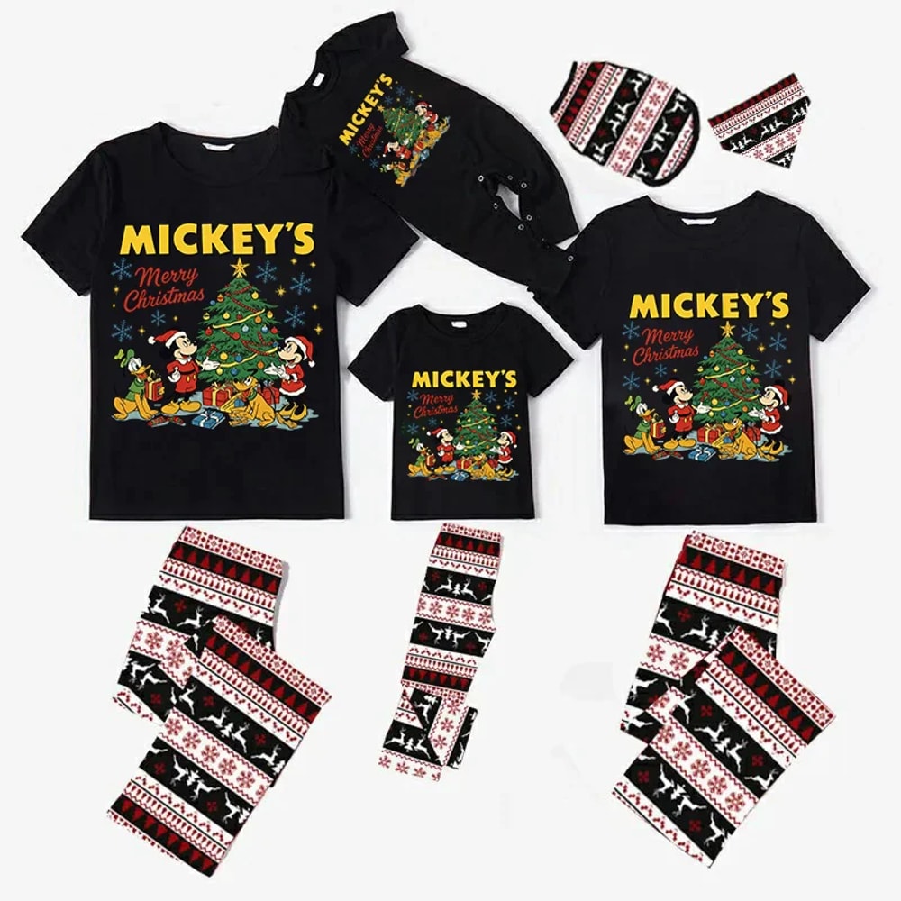 Celebrate the holidays in magical Disney style with these Mickey Merry Christmas Matching Pajamas, featuring cozy festive pants and coordinating tops for adults, kids, and baby.