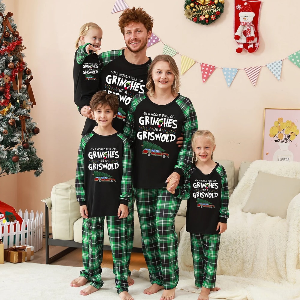 Celebrate the holidays in hilarious Griswold style with these Grinch Griswold Christmas Family Matching Green Plaid PJs! Featuring fun quote graphics and cozy green-plaid pants, these matching sets make festive lounging unforgettable for the whole family.