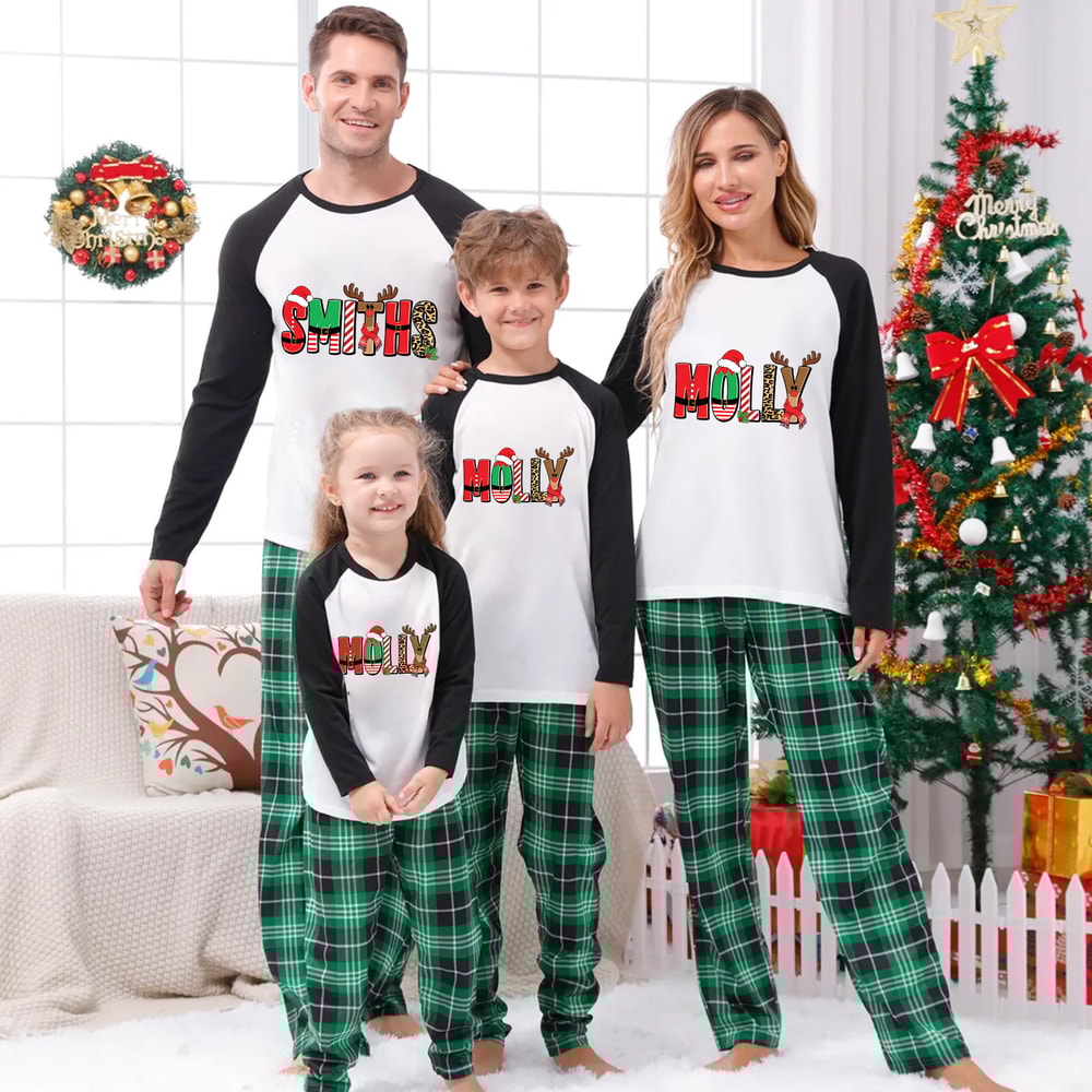 Celebrate Christmas in cozy style with custom green plaid family pajamas! Personalized name tops for men, women, kids, babies, and pets. Soft, comfy, and easy to care for.