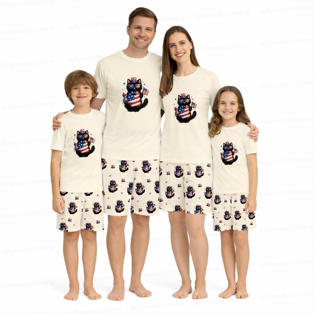 Celebrate in style with Cute Black Cat 4th of July Pajamas. Soft, breathable fabric with fun patriotic cat print and comfy fit with pockets perfect for summer nights and festive family moments.