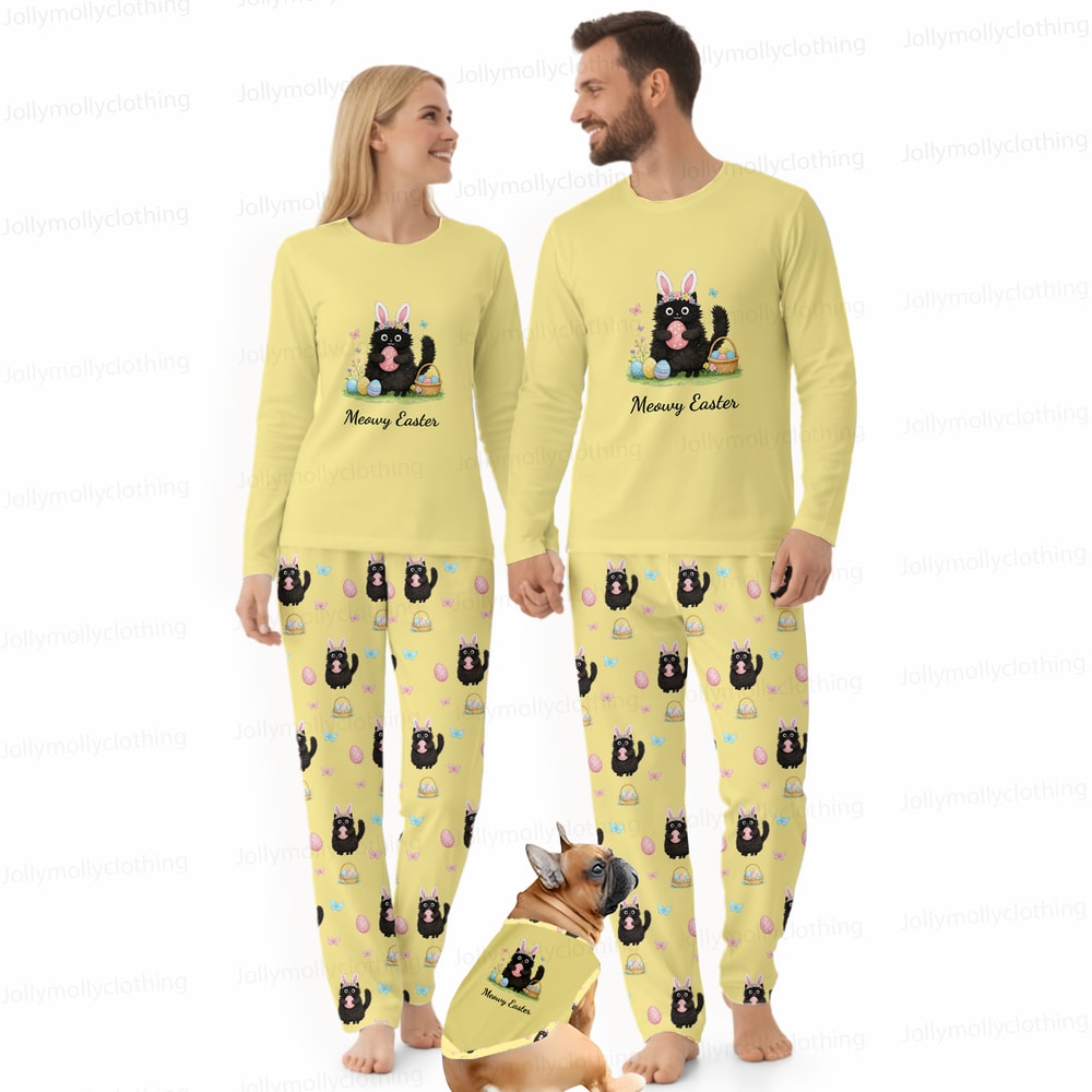Celebrate Easter in style with this adorable yellow matching family pajama set! Featuring a cute cat wearing bunny ears and colorful Easter egg prints, this long sleeve sleepwear set is perfect for mom, dad, and kids. Soft, cozy, and festive - ideal for Easter morning, family photos, and cozy nights together.